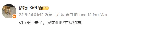 晋级世界赛,赛后369发文:S15我们来了,兄弟们世界赛加油